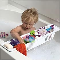 - Adjustable baby tub with built-in wash basin for toys rinse water and supplies